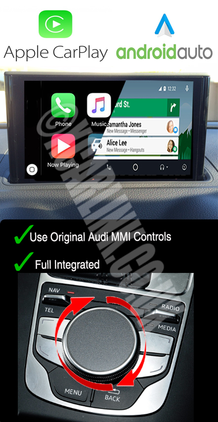 This kit will provide Apple Car Play and Android Auto on the original Audi Screen and navigate through the system via the original MMI or steering wheel controls just like the factory fitted option.