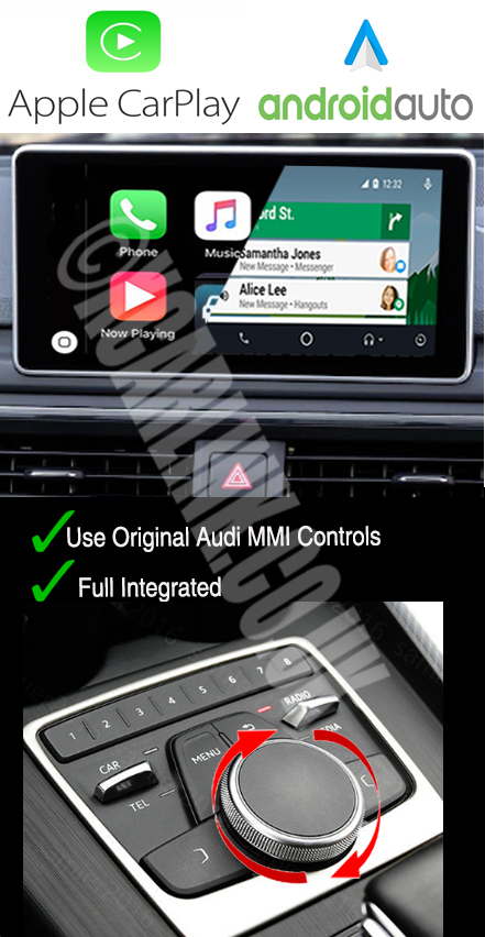 This kit will provide Apple Car Play and Android Auto on the original Audi Screen and navigate through the system via the original MMI or steering wheel controls just like the factory fitted option.